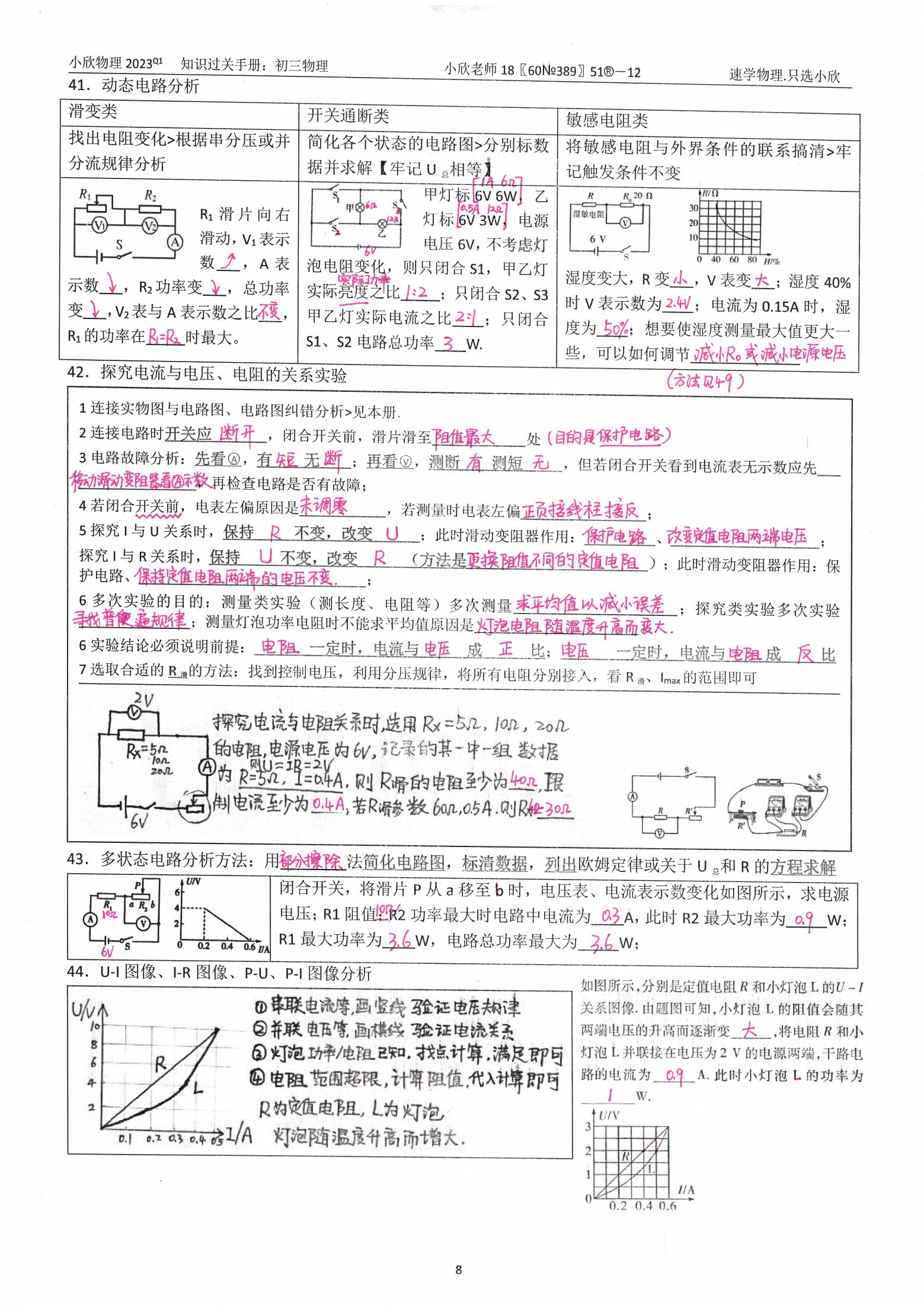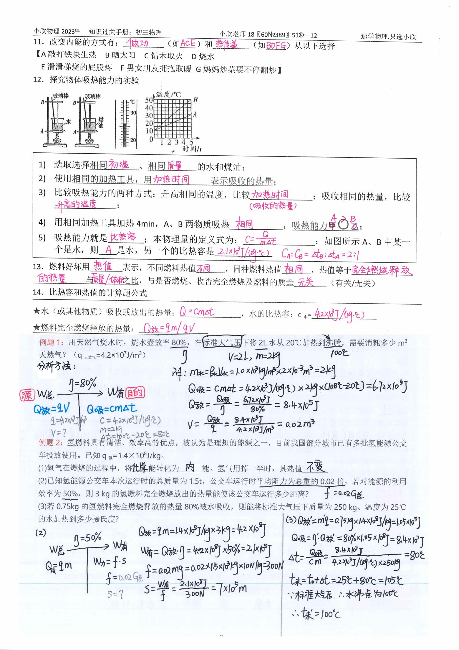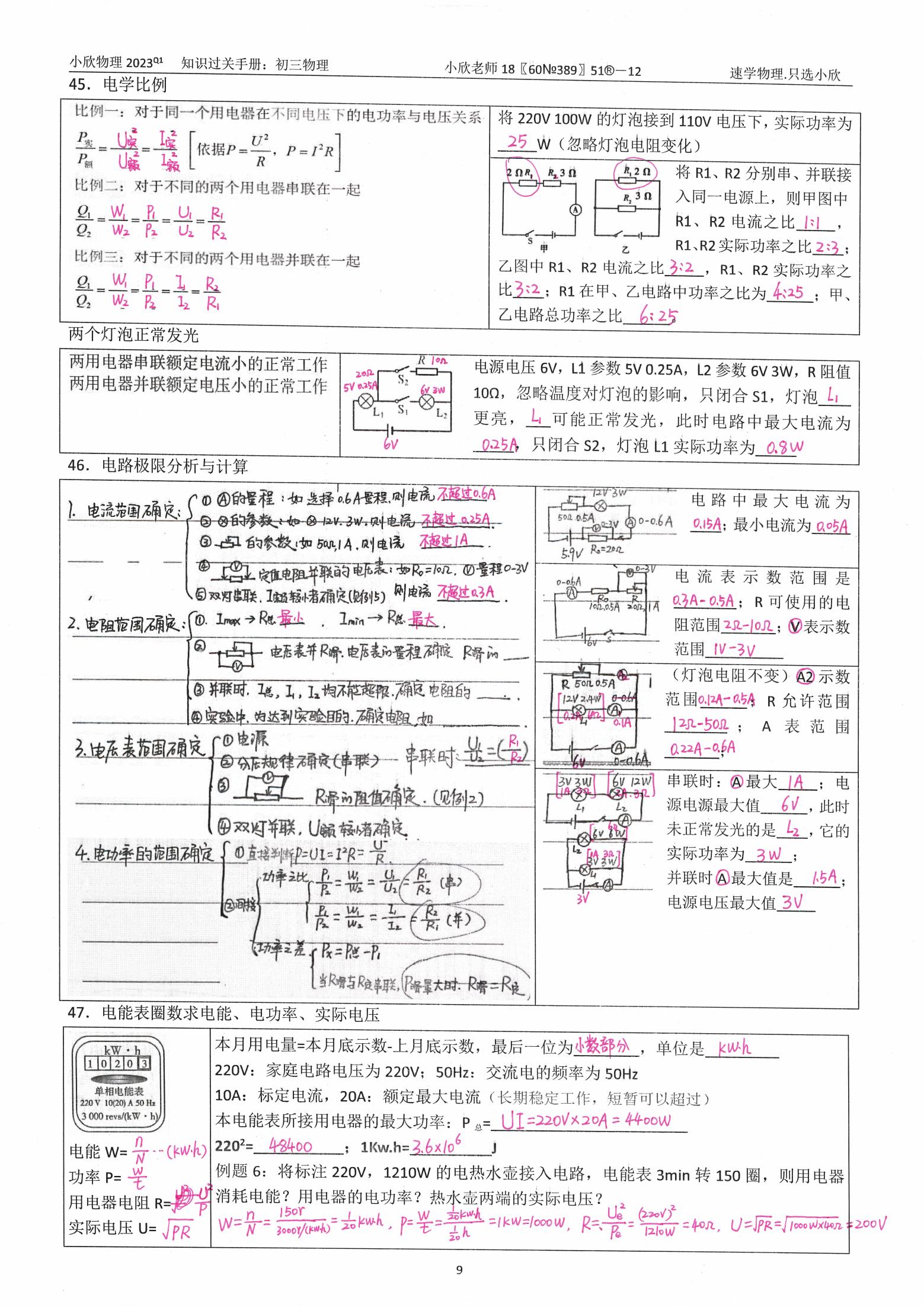 小欣物理2026寒假前考试复习资料手册{九年级}