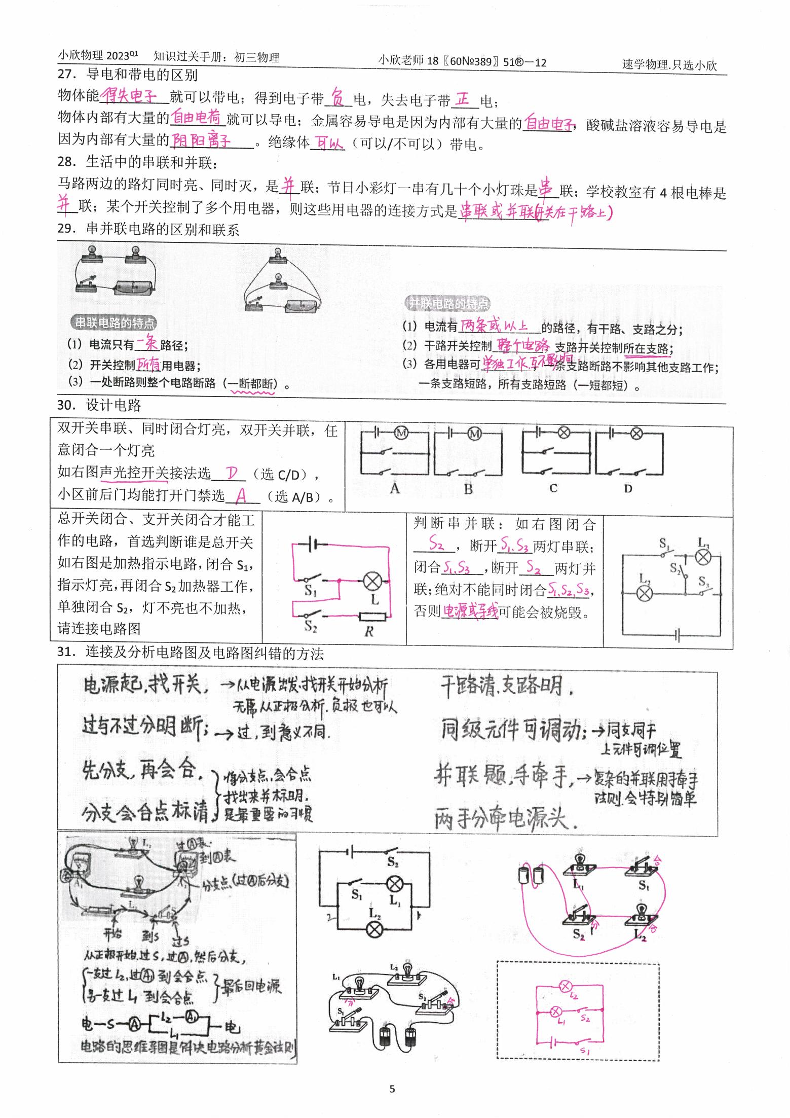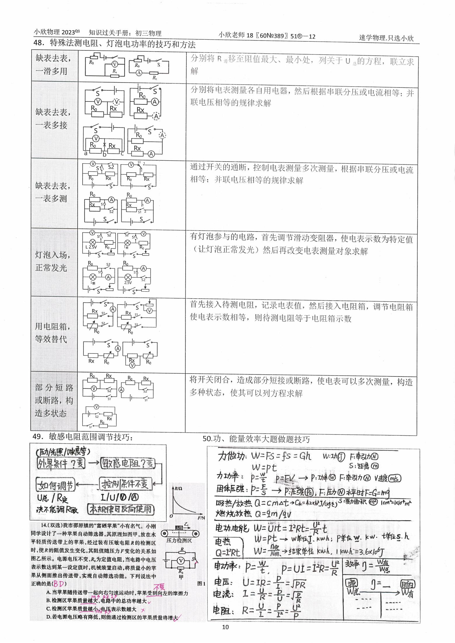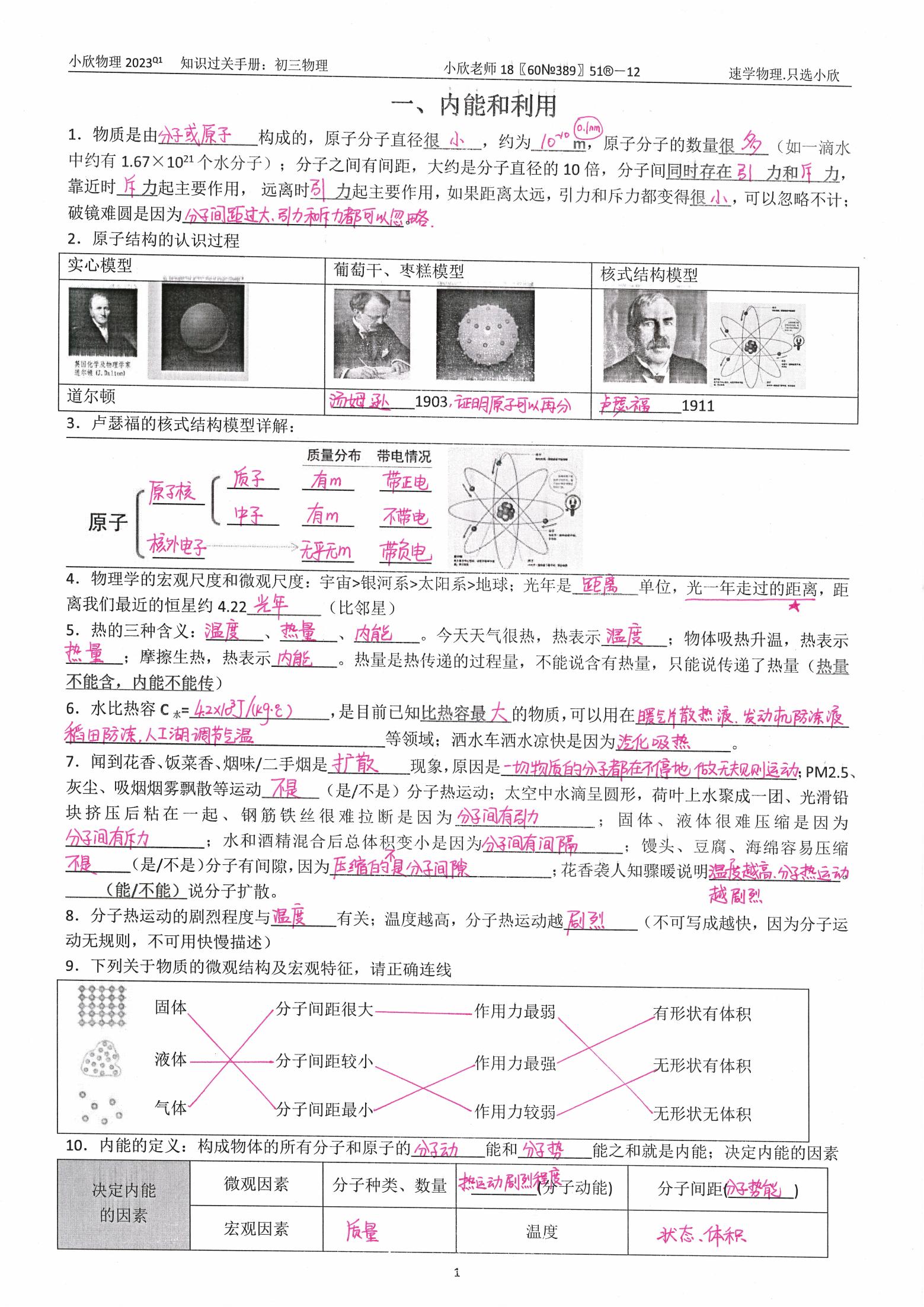 小欣物理2026寒假前考试复习资料手册{九年级}